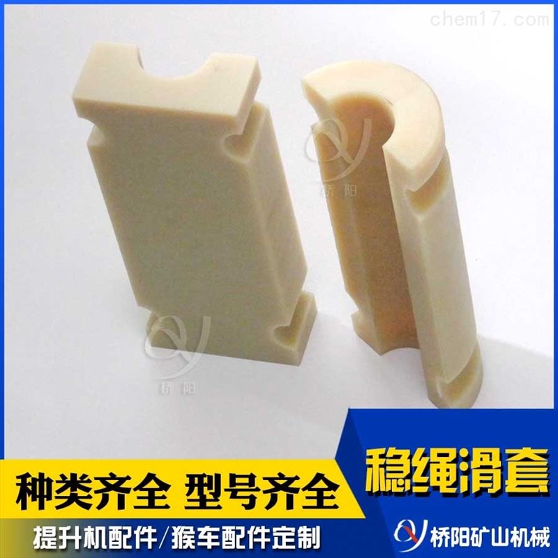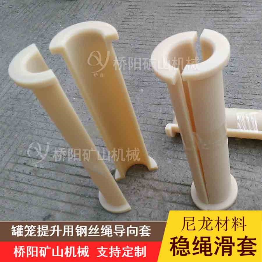 尼龙材料稳绳滑套 钢丝绳用导向套罐笼配件稳绳滑套又名罐笼滑套,钢丝绳导向套,按材料分主要有聚氨酯滑套、尼龙滑套、四氟树脂滑套、高分子滑套可替代铜件,金属铁滑套,各类不锈钢配件。